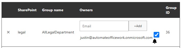 Next you need a page where people can input the URL of their SharePoint and the group that they want updated. You can also capture their email address to record them as the owner and give them the option to be notified when their group is changed and to see what the changes were.